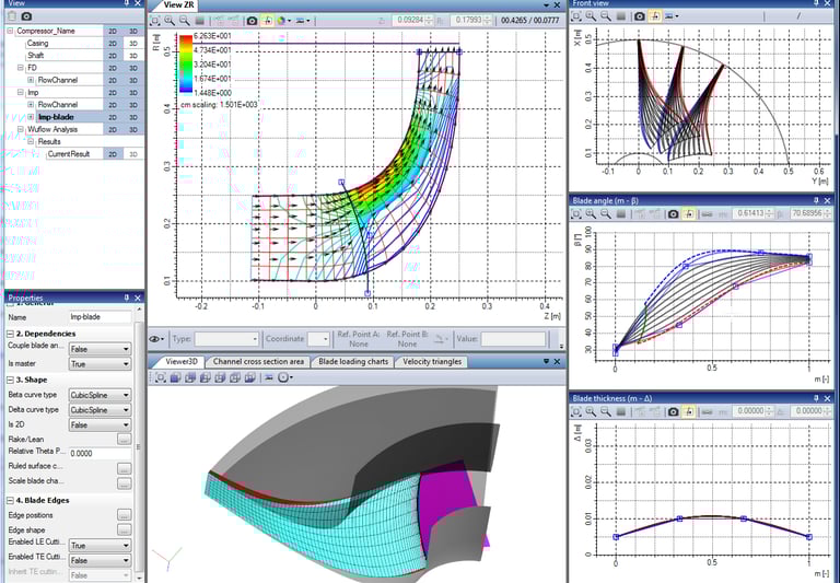 Designing aerodynamic profiles for turbomachinery is a highly iterative and technically demanding task. Compressor blades combine multiple geometric and aerodynamic parameters that must be synchronized across both single blades and entire rotor–stator stages. SoftART AG developed a custom Blade Design Software that brings all these elements together into one unified and interactive environment.