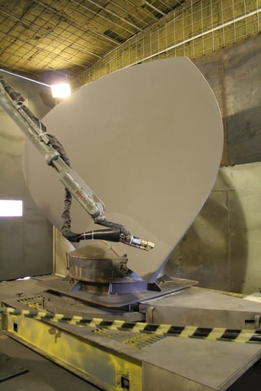 For the large‑scale Santo Antonio hydroelectric power plant in Brazil, Kaplan turbine blades require a highly durable abrasion‑resistant coating to withstand extreme water flow conditions. SoftART AG delivered a fully offline‑generated robot program to ensure the coating is applied with precise and consistent coating of these large, complex components.