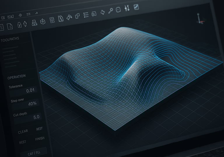 Our experience spans automated machining and processing of complex components, collision-aware toolpath planning, and the integration of robotic systems into existing production lines.